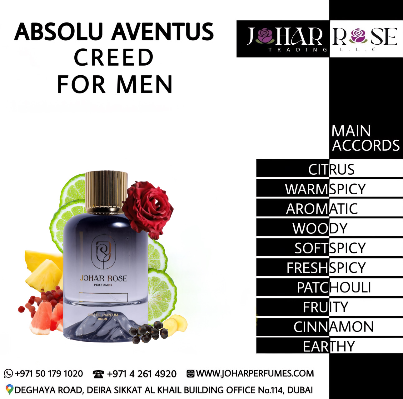 Absolu Aventus is a powerful, sophisticated, and refined fragrance that embodies strength and elegance. It opens with vibrant, fruity top notes that immediately captivate the senses, leading into a heart of rich florals and subtle spices that add complexity and depth. As it settles, the scent reveals a warm, smoky, and woody base of oakmoss, amber, and musk, leaving a long-lasting and commanding trail. Bold, confident, and unmistakably luxurious, Absolu Aventus is crafted for those who seek distinction and timeless style.