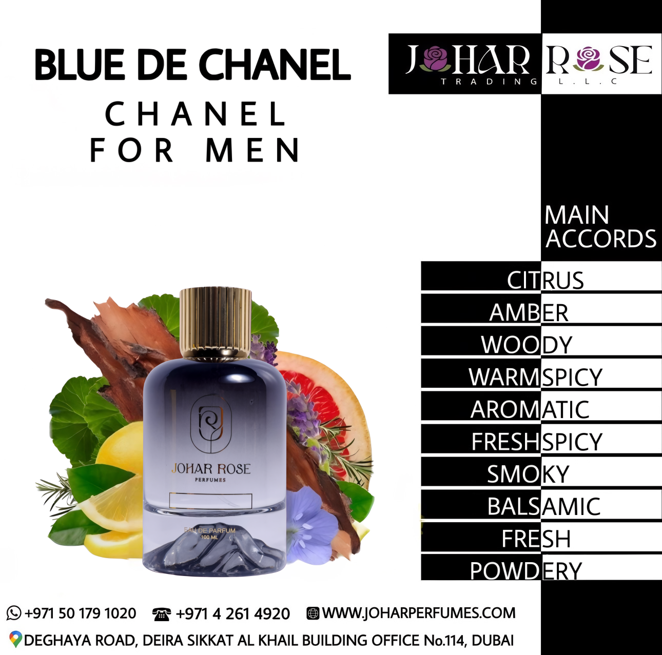 Bleu de Chanel is a timeless and sophisticated fragrance that exudes elegance and confidence. It opens with fresh, invigorating notes of citrus and aromatic herbs, creating a crisp and energetic first impression. The heart reveals a refined blend of woody and spicy nuances, adding depth and character. As it settles, the scent develops into a warm, sensual base of cedar, sandalwood, and musk, leaving a long-lasting, magnetic trail. Classic, versatile, and modern, Bleu de Chanel is designed for the man who embodies style and understated power.
