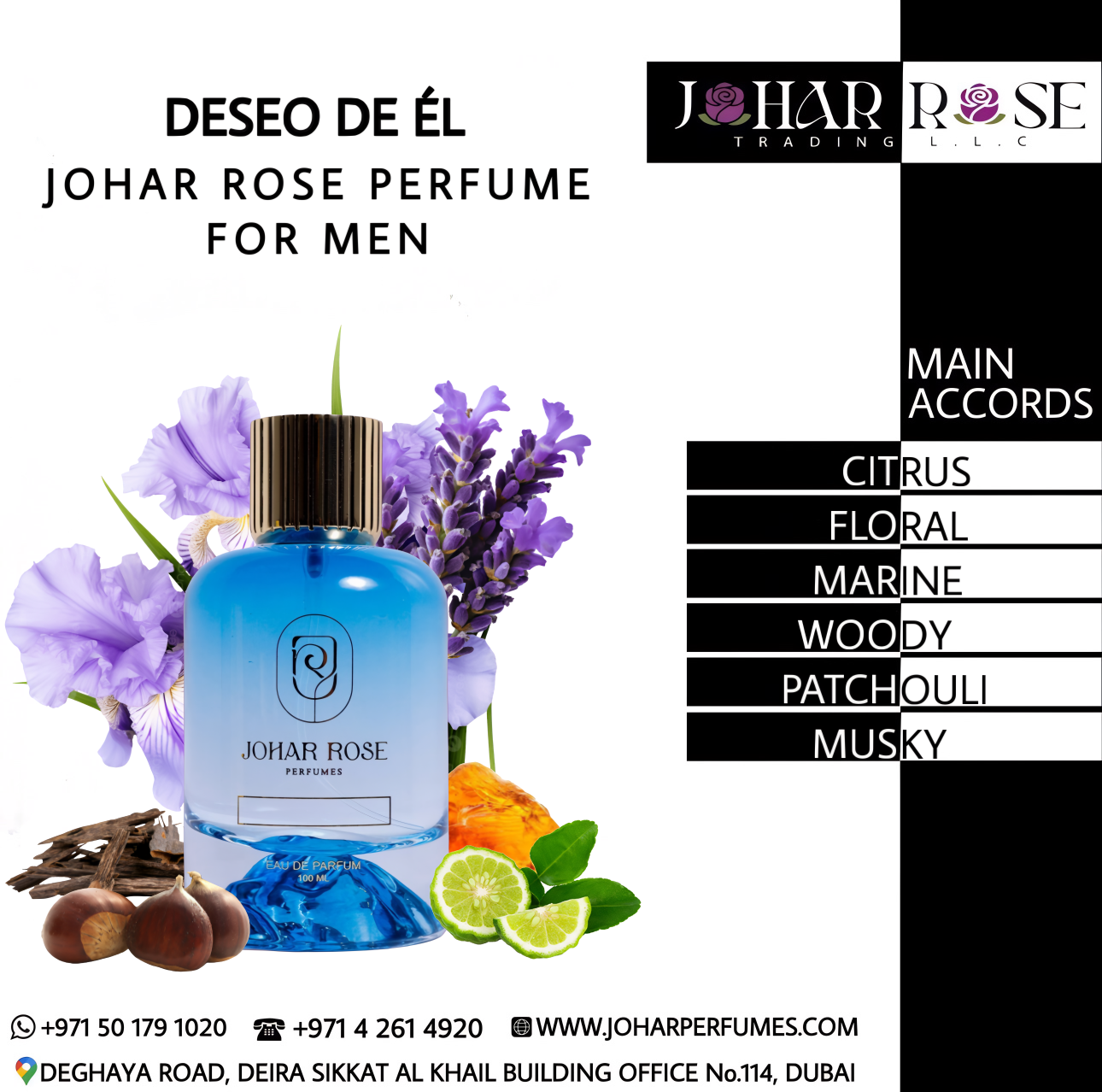 DESEO DE ÉL is a bold and charismatic fragrance that exudes confidence and sophistication. It opens with fresh, invigorating top notes that immediately capture attention, followed by a heart of warm spices and subtle woody accords, adding depth and elegance. The base is enriched with smooth musks and gentle amber undertones, leaving a long-lasting, memorable trail. DESEO DE ÉL is perfect for those who seek a strong, refined scent that embodies masculinity, charm, and timeless allure.