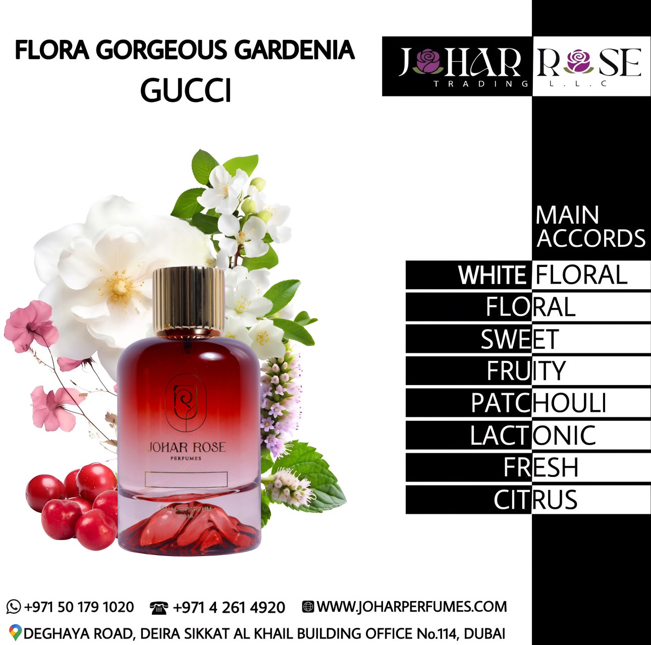 Flora Gorgeous Gardenia is a fresh, elegant, and effortlessly feminine fragrance. It opens with a burst of vibrant green notes, giving a crisp and lively first impression, followed by a heart of creamy, velvety gardenia petals that exude softness and grace. As it settles, the scent becomes subtly warm and smooth with hints of musk and floral sweetness, leaving a delicate, enchanting trail. Light, charming, and timelessly elegant, it celebrates the beauty of nature and modern femininity.