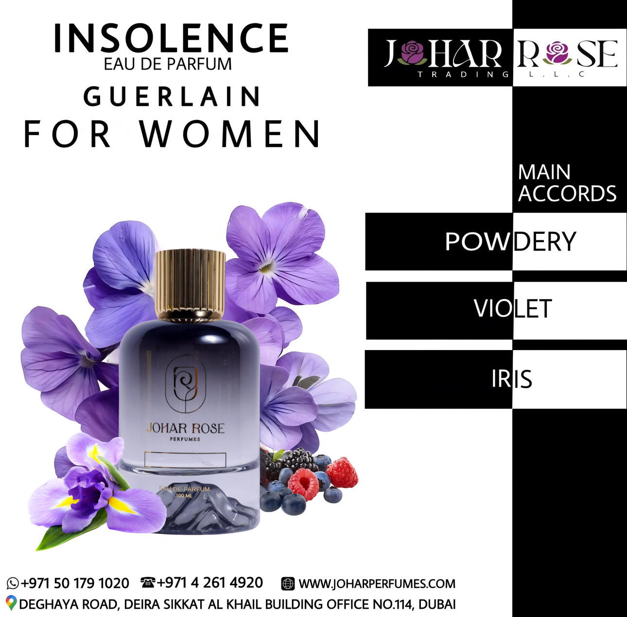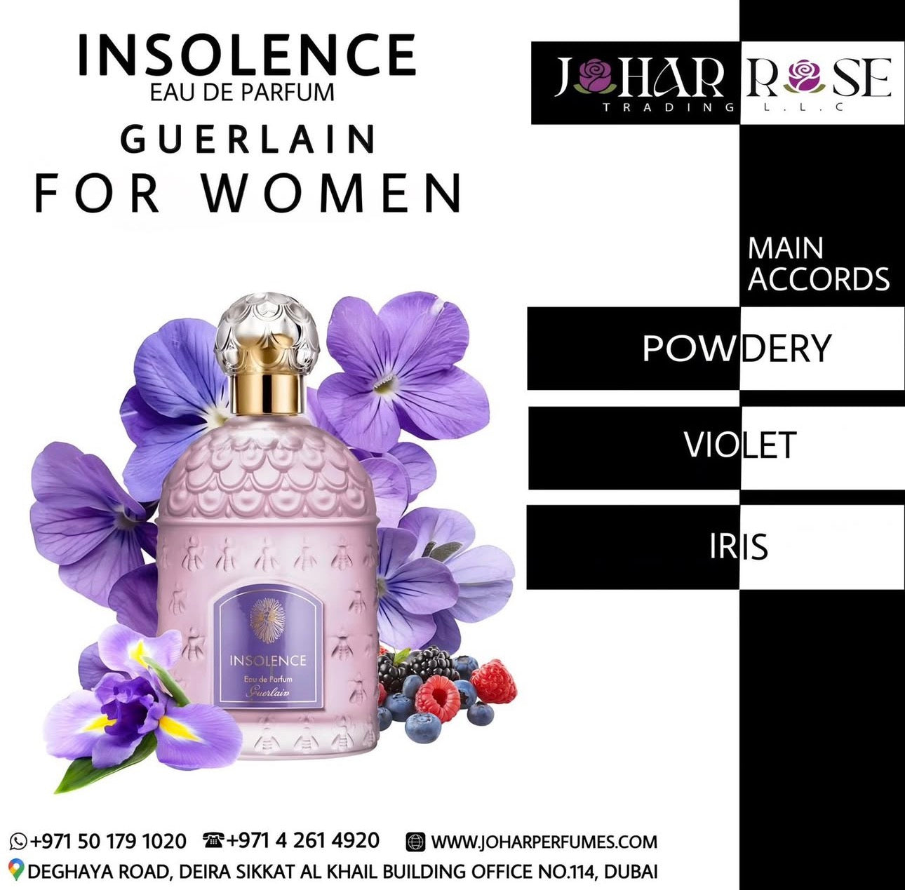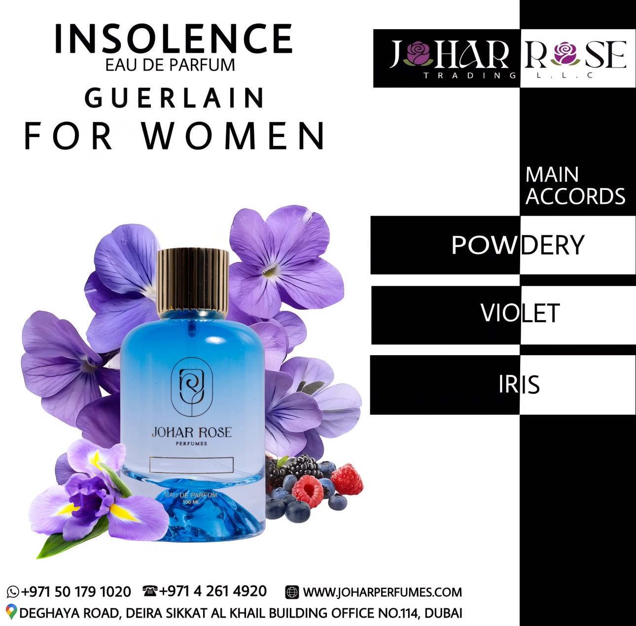 INSOLENCE is a vibrant and daring fragrance that radiates confidence and sophistication. It opens with bright, sparkling top notes that immediately captivate the senses, followed by a heart of delicate florals and subtle fruity nuances, adding depth and elegance. The base is anchored by smooth musks and gentle woody undertones, leaving a long-lasting, alluring trail. INSOLENCE is perfect for those who seek a bold, feminine scent that embodies charm, independence, and timeless sophistication.