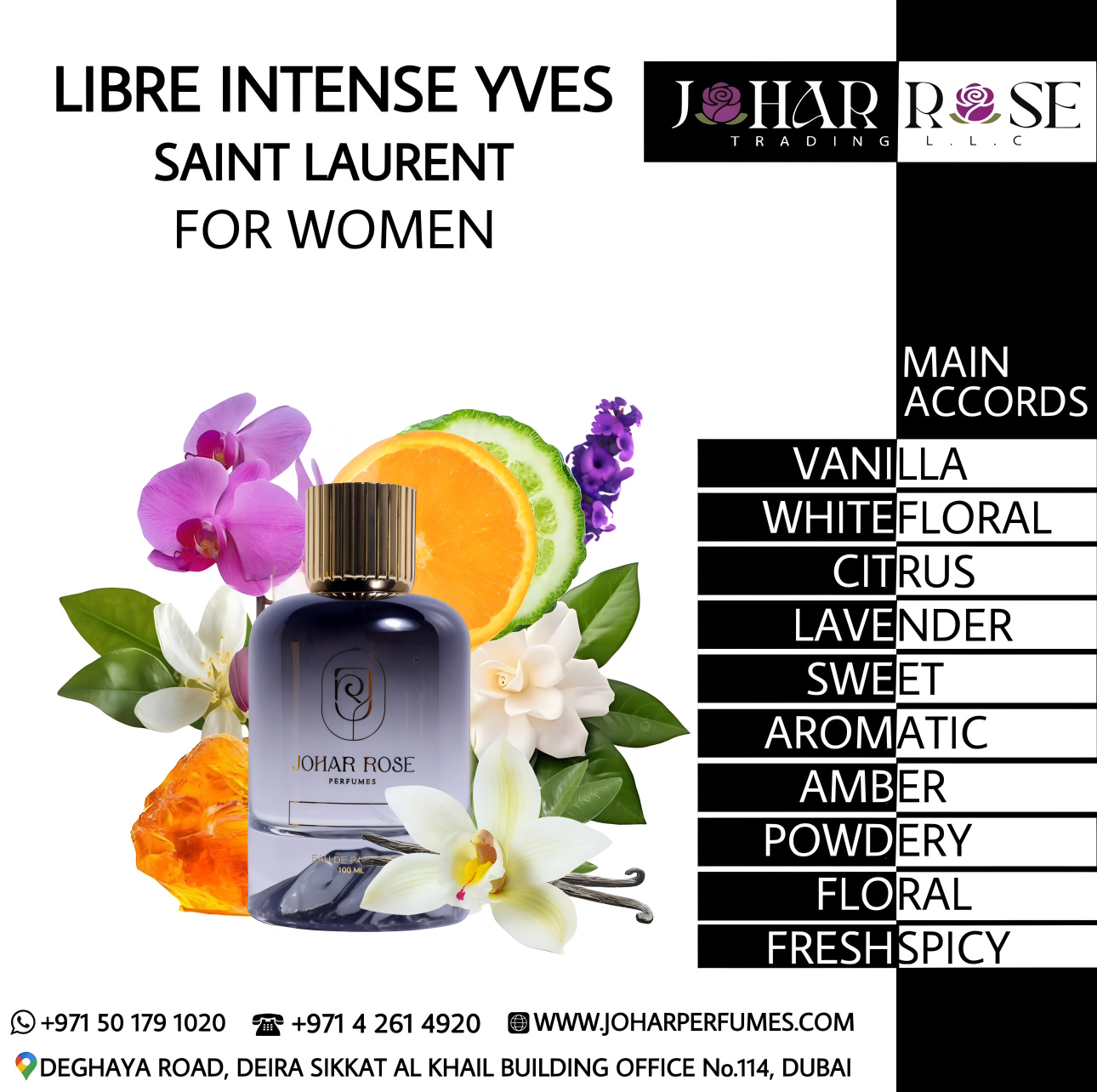 LIBRE INTENSE YVES is a powerful and sophisticated fragrance that exudes confidence and elegance. It opens with vibrant, aromatic top notes that immediately capture attention, followed by a heart of rich florals and subtle spicy undertones that add depth and refinement. The base is anchored by smooth musks and warm woods, leaving a long-lasting, intense trail. LIBRE INTENSE YVES is perfect for those who desire a bold, luxurious scent that embodies freedom, sophistication, and timeless allure.