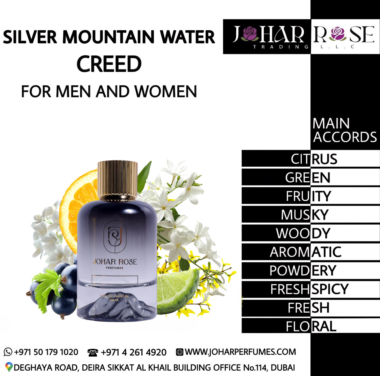SILVER MOUNTAIN WATER is a fresh and invigorating fragrance that evokes the crisp, pure air of alpine landscapes. It opens with bright, citrusy top notes that immediately awaken the senses, followed by a heart of green tea and subtle floral undertones, adding depth and sophistication. The base is composed of smooth musks and soft woody notes, leaving a long-lasting, clean trail. SILVER MOUNTAIN WATER is perfect for those who seek a fresh, refined scent that embodies vitality, elegance, and timeless freshness.