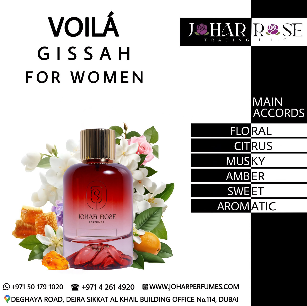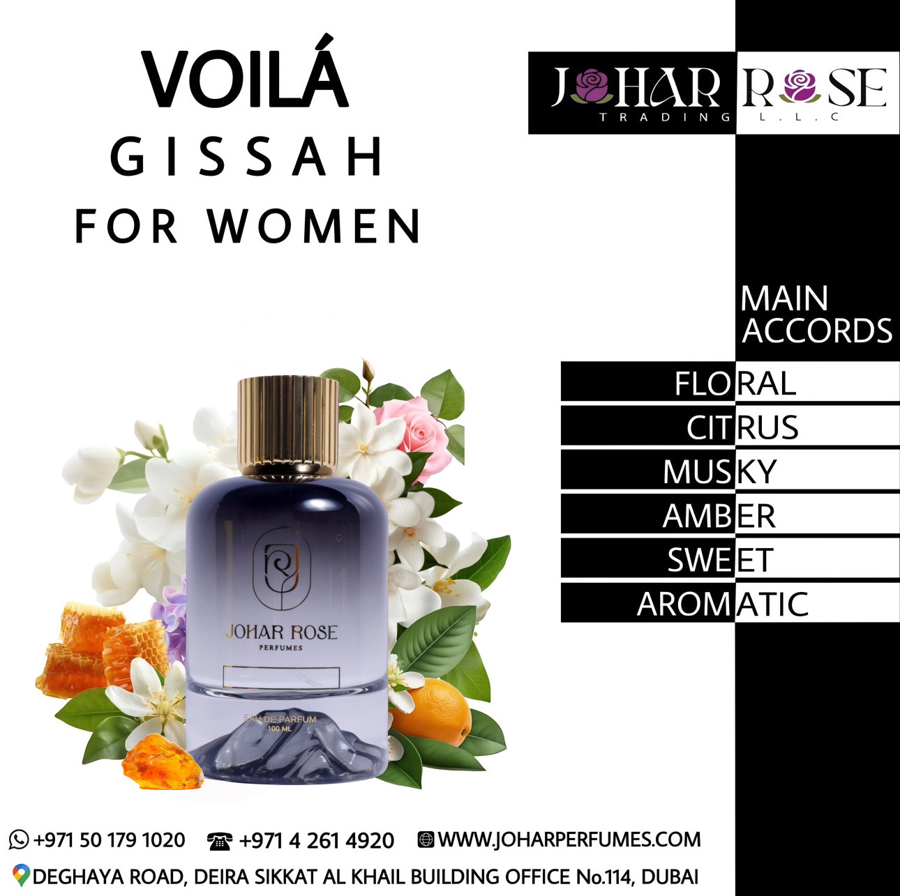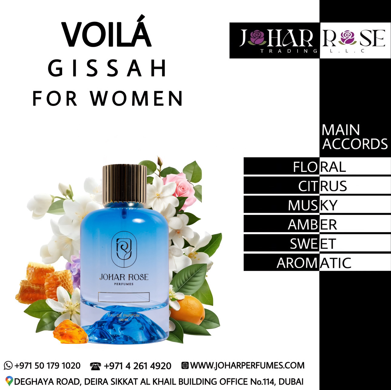 VOILA is a bright and elegant fragrance that radiates charm and sophistication. It opens with fresh, sparkling top notes that immediately uplift the senses, followed by a heart of delicate florals and subtle fruity undertones, adding warmth and depth. The base is composed of smooth musks and soft woods, leaving a long-lasting, graceful trail. VOILA is perfect for those who desire a refined, feminine scent that embodies elegance, confidence, and timeless allure.